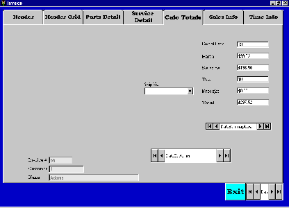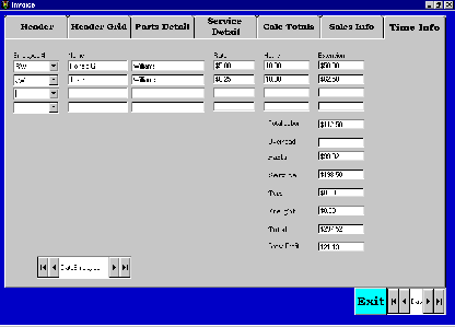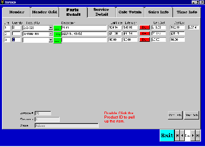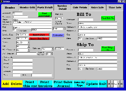 ITS is one of my customers. Among other things, they sell and repair trailers. They also have a parts department. I have created this software for Account Receivable, Inventory, Invoicing, Commissions, Payroll, General Ledger, Accounts Payable. It is written in Visual Basic 6 and I'm using Access 2000 databases. The reports I created using Crystal Reports. There are hundreds of screens. Too many to display here. But this will give you an idea of the look of the software. If you need some custom software you should talk to us.