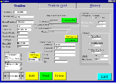 ITS is one of my customers. They sell and repair trailers. Several years ago they started buying old trailers and renting them out to construction sites and retail establishments. They now have over 150 of these to keep track of. They also built a bunch of storage garages. Keeping track of storage garage info is very much like trailer rental. But their are some differences. If you have storage garages you rent out check out our storage garage software. For both they need to invoice their customers, and handle receipts and statements. So, I created this software. It is written in Visual Basic 6 and I'm using Access 2000 databases. The reports I created using Crystal Reports.