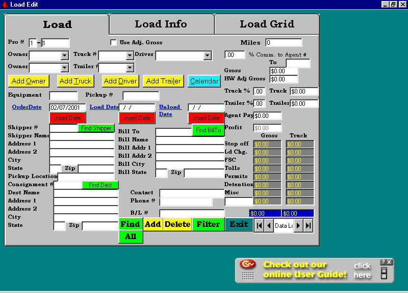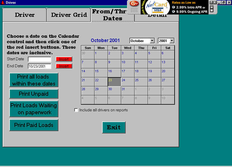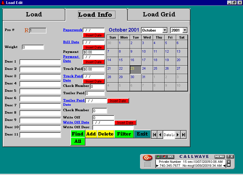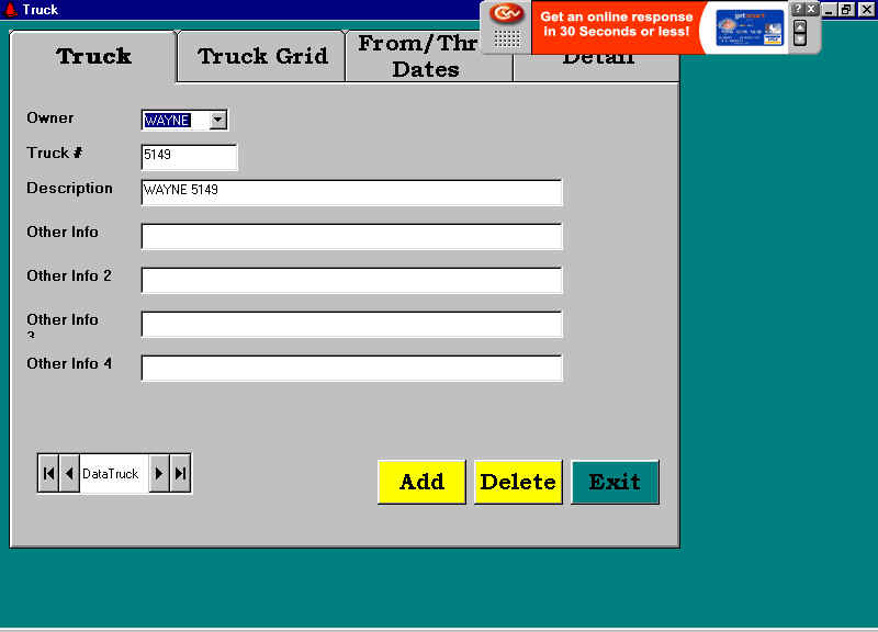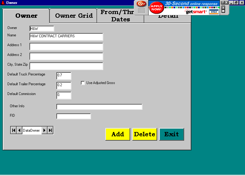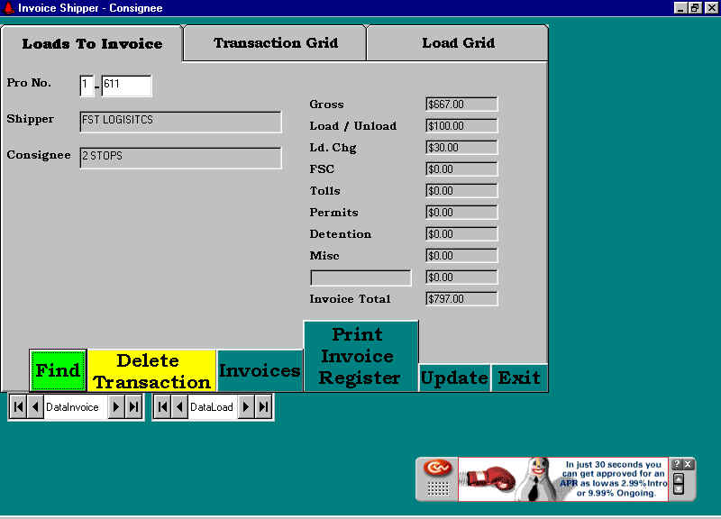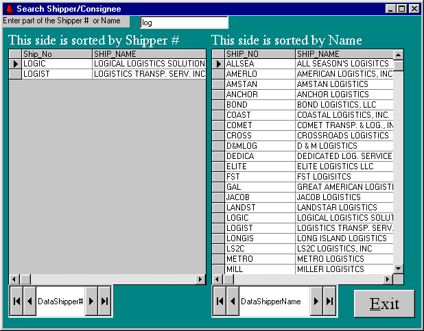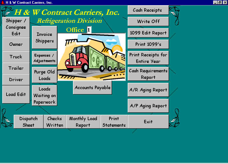 In the mid 80’s I wrote a dBase package for H&W Trucking. At the time they were brokering loads between shippers and carriers. The software handled invoicing, accounts receivable, carrier payables, 1099s, aging reports, etc. In 1999 I rewrote it using Visual Basic 5, hooked to an Access 97 database. In 2001 I redid it using Visual Basic 6, hooked to Access 2000.